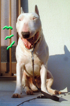 さて、先日美味しいパンを買いに、旦那様とマロンと行ってきた。 場所はなんと!!すー爺さんのお家☆奥様が土曜日だけやっているパン屋さんなのです♪ 敷地内にログハウスがあって、そこで美味しいパンを焼いているのだ! さっそく入店♪ 色々な種類のパンに目もお腹も誘惑される・・・(=▽=)ウマソ 3人で『これと〜これと・・・あとこれも!!』って買いまくる。 隣ですー爺さんがこれまた良いセールスをするものだから・・・ 購入後、すー爺さんの愛犬テリー君に挨拶。 ケージ越しでしか対面できなかったが、柵の間から手を入れると、ふいに背を向け顔をこちらに振り返りこう言った。 『さすっても良いよ。』 あっど〜も!ご挨拶が遅れまして・・・(^v^;) っとさすらせて頂くことに。 こころなしか満足そうなお顔。 すー爺さんが言うには、テリー君が夜な夜なすー爺さんにしか聞こえない波長(?)で 『漏らすぞ。』 っと訴えるらしく、眠れないんだと言っていた。 なんとも言えない表情ですなぁ・・・おいしいキャラだ。 気を取り直して・・・うん!男前!! さて、ガレージでパンを頂くことに♪ 3つしかないけど、他に黒ゴマパンもあった。が食べちゃった後だったから無い。 マロンはチーズパンが超お気に入りになったらしく、『買い占めれば良かった』と豪快な発言を漏らしていた。 ホント超美味しかったです!土曜休みのときしか買いに行けないのが残念ですが、また行きま〜す(^0^)/ 一応・・・CBR1000RRとCB1300SBで買いに行ったんですよ〜 3台だとうるさいので、600RRはお留守番♪ お腹いっぱいになった後は、外環下を走って遊びましたとさ〜(−v−) (なんか簡単に済ませているカンジー)
