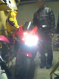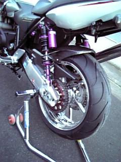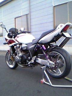 さて、日曜日にマロンのCB1300SBをカスタムした。 実は、随分前から暖めていたことで、マロンが注文してから色々揃うまでに時間がかかった。 本人も、こんなに時間をかけてカスタムしたのは初めてだと言っていた。 以前、皆様に色々とご意見頂いてゆっくりじっくりでやってみたらしい・・・ が、これを見ると十分スピーディーかつ一変にってなカンジですが。(−−;) まずは、これ。『GALESPEED』のアルミホイール。 これに写真は無いが、AFAMのスプロケを装備。 次に、これ。『Quantum』のリアサス・・・すっげー!! マロン専用ザク・・・いやCB1300SBが完成! その後、旦那様が友人と忘年会だというので、バイクで送ることに。 マロンも一緒に行くことにして、まずはそれを試運転とした。 行きは、ジョーが後ろに乗ったいたので、マロンのバイクが良く見れた。 ビッカピカの足周りに、渋滞中の車のライトがあたって綺麗だった・・・☆ そうそう、もちろんタイヤもミシュランのパイロットなんとかに交換。 サイズも180から190へワンサイズUPした。 という訳で、乗り心地も操作性もだいぶ変わったようで、本人は大喜び♪ タイヤが変わったのが一番体感的に良かったみたいだ。 見た目も、スポーティなタイヤなのでアルミのホイールとでかなりシャープな印象だ。 Quantumのサスは、ノーマルに比べると良く動く。 まだセッティングとかしてないけど、きっとリアタイヤにかかるトラクション(?)は格段に変わるに違いない・・・(嘘言っていたらゴメン) その夜、マロンは1人外環道で愛車に舌鼓を打っていた・・・(食らうのか?!) その日の夜遅くに、マサさんがガレージにやって来た。いや、来て頂いた。 マサさんは先日、HIDを取り付けた。 と言う訳で、以前使用していたライトを譲っていただいたのだ。 (マサさんの写真撮らなかった〜☆) ハロゲン(?)何だか分からないけど、ノーマルより白くてとっても明るい♪ ありがとうございました!大切に使わせて頂きます♪ そうそう、随分前にTさんとファミレスに行ったときのこと。 旦那様が食後にこれを注文した。↓ これにTさん激怒! 信じられないと旦那様をなじり倒し、食べ終わるまで罵声を浴びせ続けた。 皆様はどう思われますか?男性の甘党・・・ジョーは気にしませんが。 (アンケートを取れと脅されてやっております) ※この内容には若干の色づけを施しております。 きょうHONDAは、光へ昨日のジョーでマロンがプレゼントしたかもー。