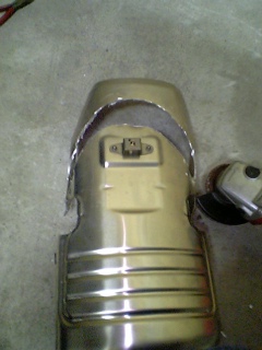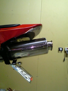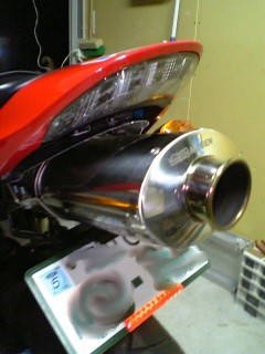 まずは外すもの外す。これは3回目だからね! サイレンサーを外したら、旦那様が一言・・・ 『エンジンかけてみない?』直管ですね・・・ゴクリ。 キュルキュル・・・ガルン! 少しだけスロットル開けてみた。 ○※△■#$%★%!!! すっすげぇ・・・(・・;) さて、断熱板を外したらカットラインを決めてマーキング。 そしていよいよ、ベビーサンダー(危ない名前だ)でカット。 切り口を紙やすりで磨く・・・というより削り、バリを落とした。 組み立ても3回目!慣れたものよ♪ うんうん!スペーサーがまたあまったね~(^^;)何故?! とりあえずスッキリした写真です~♪ (まるで通販番組のようだ・・・) でもすっきりでして嬉です! 『無限』もハッキリ見えるしネ♪ あ~クタクタ眠いので寝ます!(--)zzz