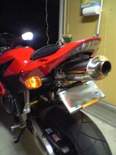 仕事前にブログを更新・・・フフフ(−−) 旦那様のデビルマフラーが休み入った頃に来た。 1000も600ほとんど同じなので、 だいたいの要領は把握済み。 テキパキ外していく。 ジョーは手伝い不要ということで、 寝に入る。zzz すると目の前で雷が落ちたような『ドカーン!!』 ??? よく見るとCBR1000RRの直管銃口(?)がジョー目の前に。 うう!やられた・・・やっぱ試しちゃうよね 凄い音、と言うかもう何が起きたのか寝起きのジョーには把握できず、 ポカーンな顔していたと思う。(−−;) そしてキレイに装着完了♪ 試し乗りにCB君を連れてひとっ走り行って、 デビルサウンドを堪能した旦那様でした〜! でも旦那様のフェンダーレスがイマイチ・・・ やっぱり1000が一番うるさくなったなぁ。 (車検対応じゃないから) またも、ジョーのマフラー音がよく聞こえない状態になった(−−) くやしー!! 追記 そうそう!書き忘れていたが、 旦那様は断熱板取っちゃいました! 結果・・・熱い! だそうです(^^;)