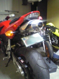 フェンダーレスキットを購入したので付けました。 今回もマフラー同様手こずりましたよ・・・(--) それには、ナンバー灯が付いていなかったので、 店員Tさん(バレないか?)のオススメでデイトナのLEDナンバー灯を購入。 LEDって垂直に光が当たる、だから横一列だと真下しか照らさない。 しかしデイトナのは、両端のLEDがやや横向きに付いているので、 ナンバー全体を照らしてくれる! さすがオススメだけのことはある! 作る側も考えてるな~ってカンジですね。 かなりスタイリッシュに変身しました♪ (あとはウィンカーだな。) 翌日、いつもの3人で首都高速C1の芝浦Pまで行ってみた。 レインボーブリッジからの東京の夜景は絶景なり!! しかも愛車のCBR600RRと一緒に♪ 芝浦Pについてコーヒーじゃんけん。 3勝1敗で我ら夫婦の圧勝中だったが、この日も奢ってもらった。 4勝1敗(あーざーっす!!) 無限マフラーの音だが、もっと瞬発的に加速してみたら もっと良い音が期待できるのではと言われ、帰りに実行してみる。 広く長い直線でガバっとアクセルを開けてみた。 すると、フォォォォォン!! おお♪なんか凄くそれっぽい音が!(何っぽいんだ) 考えてみれば今まで、『慣らし』とか言って全然開けてなかった気がする。 ガバッと開けた瞬間、グィンっと持って行かれる感じ? と気持ちの良い加速・・・あれ? なんか~楽しくない?CBR600RRって♪ と今更、こと更そんな風に感じてしまったのだった。(^v^) ※以前書いた、ウルトラマンみたいなポジションランプ(青LED) ノーマルに戻しました。 なぜって・・・だからウルトラマンみたいだったから・・・(--) 結果、ネットで良く