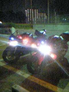 新倉Pに缶コーヒーを飲みに!! 10:00ガレージ出発! 外環道を目指して走りながら、初めてのナイトランに緊張していた。 さすがに高速はガラガラで、ジョーと旦那様しか見えないといったカンジ。 首都高よりも広くてなだらかなコーナーなので、ジョーでも安心だ。 旦那様はタンクの上に座ってみたり、スピードを急に上げてみたりで、 ジョーは肝を冷やした。 そうこうしているうちに、新倉Pに到着!! 着いたどーーー!!(マサル) とりあえずお目当ての(?)『おいしい缶コーヒー』とやらを飲む。 おいしい・・・ポッケに入っていたタバコもおいしい・・・ 新倉Pってすごいね!(>▽<)←アホ さて、写真も撮ったし(携帯しかねーのかよ!)遅い時間だし そろそろ帰るか・・・ 帰り道は、だいぶ慣れて来たこともあって、 少しスピードUP! 8000回転で、153kmくらい出した。 その時タンクに伏せてみたんだけど、風圧的には結構ラクチン♪ でも、旦那様が前で同じことやってるの見たけど、なんかカッコ悪かった。 なので、ジョーはやめた。 順調に流れに乗れていたと思っていたら、旦那様またもやいきなりスピードUP! あっと言う間に見えなくなってしまった。 ちょっと!ちょっと・ちょっと!! ジョーは外環道よく知らないんだよね(^^;) どこで降りるのよ! 金一銭も持ってないし・・・わぁ~ん(TT) ひとり高速をひた走ったのでした・・・酷いよね。 出口付近で旦那様発見!! 一気に加速して追いついた。ホッ ガレージ着いて『楽しかった~☆』と話していた。 さて、バイクしまうか。 『出し入れできなきゃ一人前のライダーとは言えないよね!』(?) と言いながら、軽い坂道を押していたその時・・・ グキっ 『ヴっ!!!』 左の肩甲骨の付近の筋肉を損傷! 『痛い!痛い!』と叫んでおりました。(--)最後の最後で。 考えて見れば確か、ブレーキ握りながら前へ押していた。 途中で気づいていきなり離したときにやってしまったのだ(・・;) それからは、いきなり老人になったような歩き方をしていた。 まさに此処の為のネタとしか思えない馬鹿なケガである。 でもまぁ、写メみてニヤついてました! また行きたいな!ちょくちょく行けばならし運転も終わっちゃうよね! 今日は旦那様と150km/hのデートでした(^^) 帰ってから雨降り出してた。危ない×2(^^;) PR