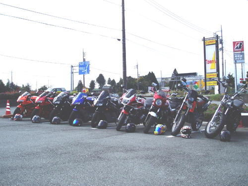 どうも昔から山へ行くとあんなペースになってしまうんですよね(;^_^A やっぱりツナギではなくGパンにしとけば良かったと内心反省しておりますm(__)m ところで僕もここ二日程原因不明の腹痛で寝込んでいまして、今日医者に行ってきて膵炎の疑いがあるといわれました。 何でもお酒飲みに多いらしいですよ。 医者からは禁酒令がでてしまい、これからつらい日々が続きそうです。 みなさんもバイクに乗る時だけではなく普段の食生活も気を付けましょうね。(って一番説得力ないね(^^ゞ) ● Minasama Otukaresamasesita!